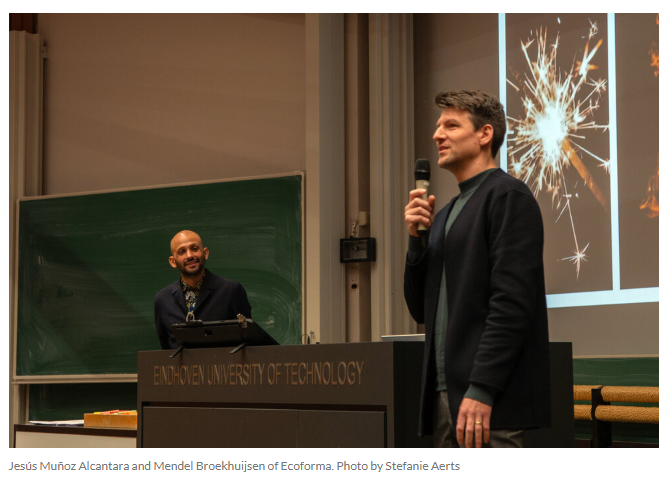 Recently, alumni Mendel Broekhuijsen and Jesús Muñoz Alcantara spoke with students in the Sustainability and Design course at TUe about how their studio, Ecoforma, helps designers of electronic products apply sustainable strategies. It was a good opportunity to show how Industrial Design prepares the next generation for this societal challenge and how alumni expertise flows back into education.