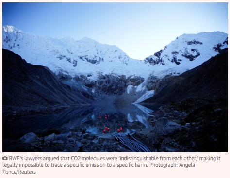 In the RWE case, lawyers challenged a peer-reviewed Nature Geoscience study attributing flood risk at a Peruvian glacial lake to human-caused warming – not by denying climate change but by arguing that the glacier model contained underlying uncertainties, and that CO2 molecules were “indistinguishable from each other”, making it legally impossible to trace a specific emission to a specific harm.