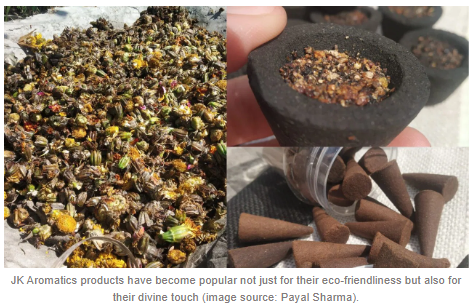 Payal took a bold step and started JK Aromatics and Herbs LLP, a startup that upcycles temple flowers into natural, environment-friendly incense sticks in 2019. She began small—gathering temple waste flowers from near her locality with the assistance of volunteers and hand-separating them at home. Something that was a hobby turned into a registered company with an expanding footprint in Jammu.