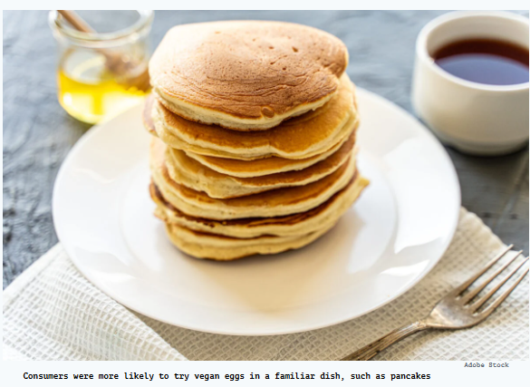 A new study has found that consumers may be more willing to try vegan eggs if they were cheaper and included as part of a familiar dish, such as pancakes.