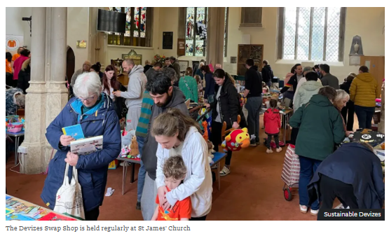 Sustainable Devizes first held a Devizes Swap Shop in 2022 from a small stand in the town’s market place, with a couple of tables of books and toys.